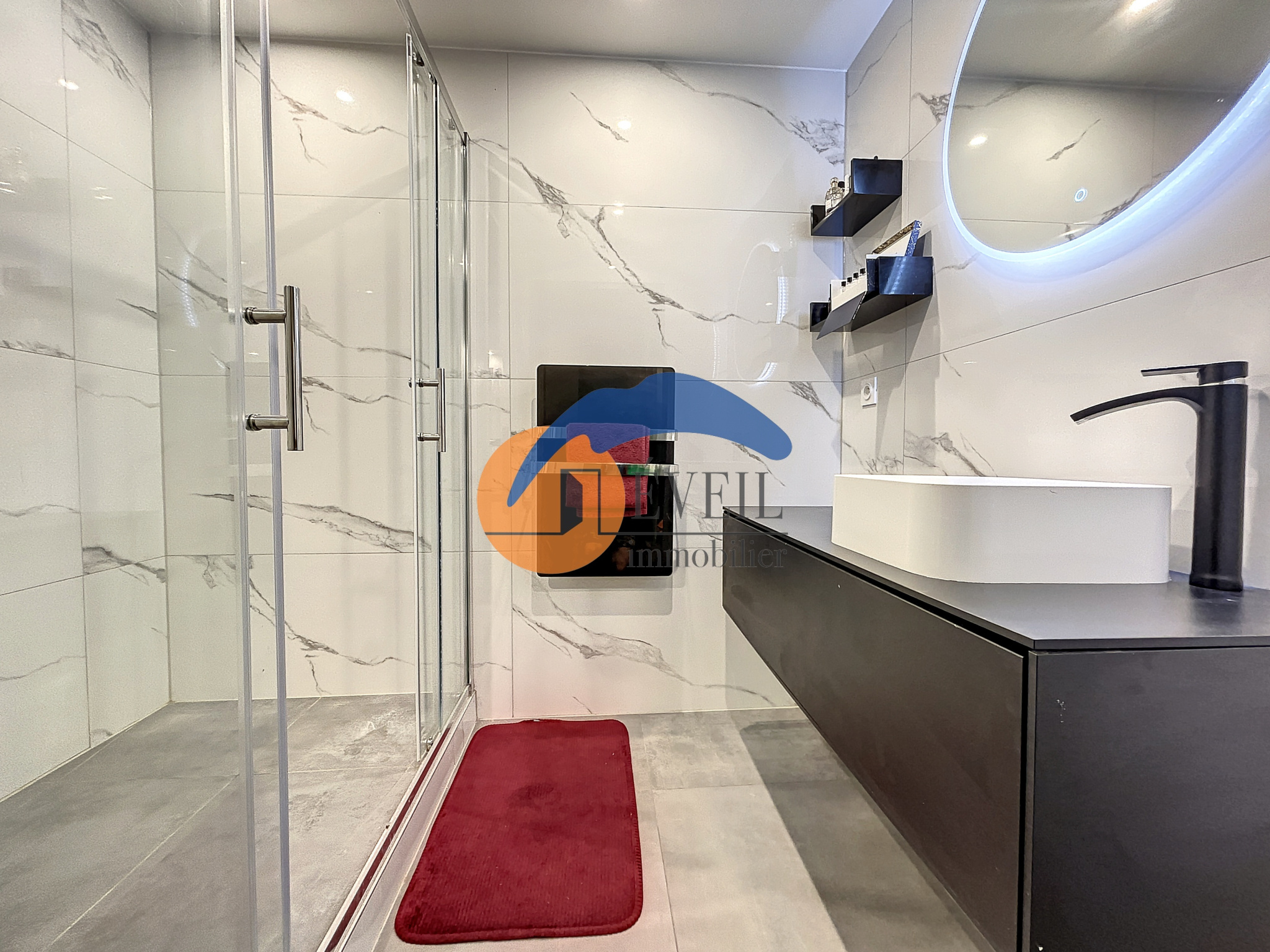 Une salle de douche moderne, facilitant la vie quotidienne.